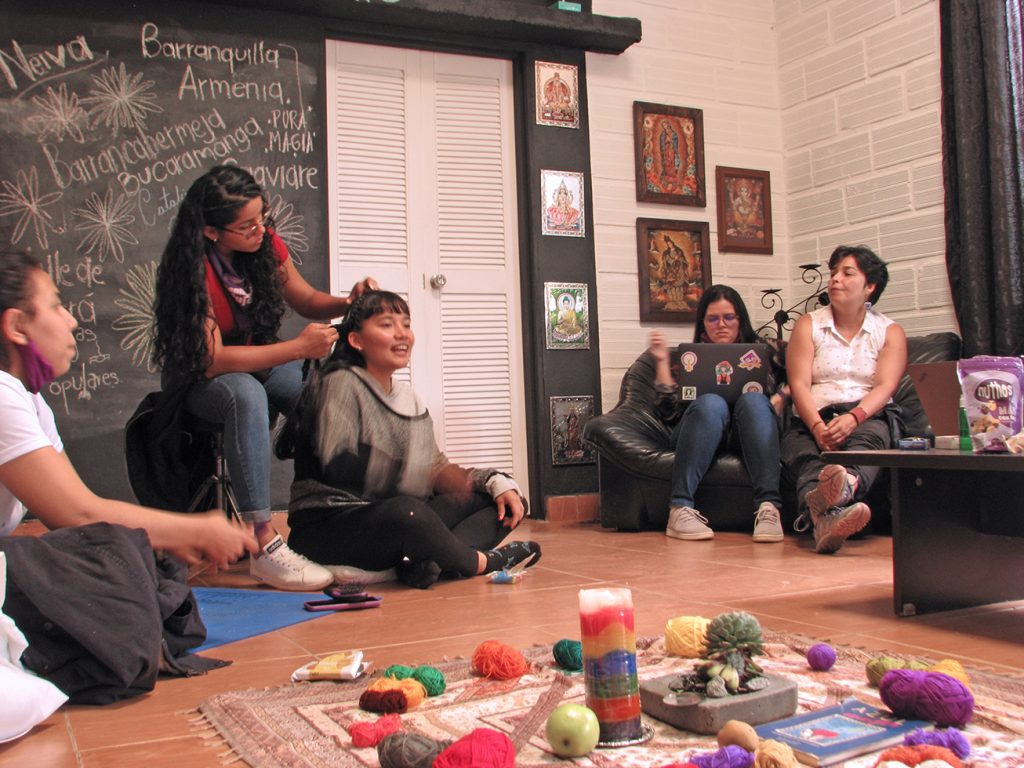 “La otra dimensión del cuidado que nos topamos fue el proceso de sentipensar las economías fueron las prácticas de cuidado que las brujas tenemos entre nosotras, donde la cotidianización del cuidado se ve reflejado en la posibilidad de aprender juntas, de hacer unas equilibradas divisiones del trabajo para no sobrecargar de trabajo y reconocer las habilidades.”